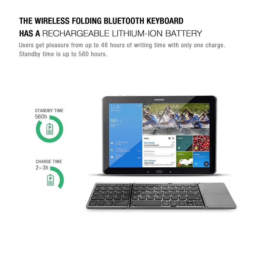 Giới thiệu [Mã 154ELSALE2 giảm 7% đơn 300K] Bàn Phím Không Dây Mini Gấp Gọn Bluetooth Tích Hợp Touchpad B033