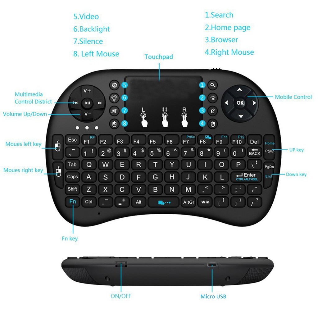 Với bàn phím kiêm chuột không dây UKB-500RF Mini Keyboard đầy đủ các chức năng cần thiết và như một bàn phím thông thường, bạn có thể thay đổi tốc độ chuột chỉ bằng phím Fn+space và thêm những phím nóng phục vụ tối ưu việc giải trí, chơi game, hay lướt web…