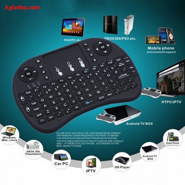 Bàn phím mini wireless kiêm chuột cảm ứng (Loại tốt) có pin LithiumPhù hợp với Tivi box, chơi game