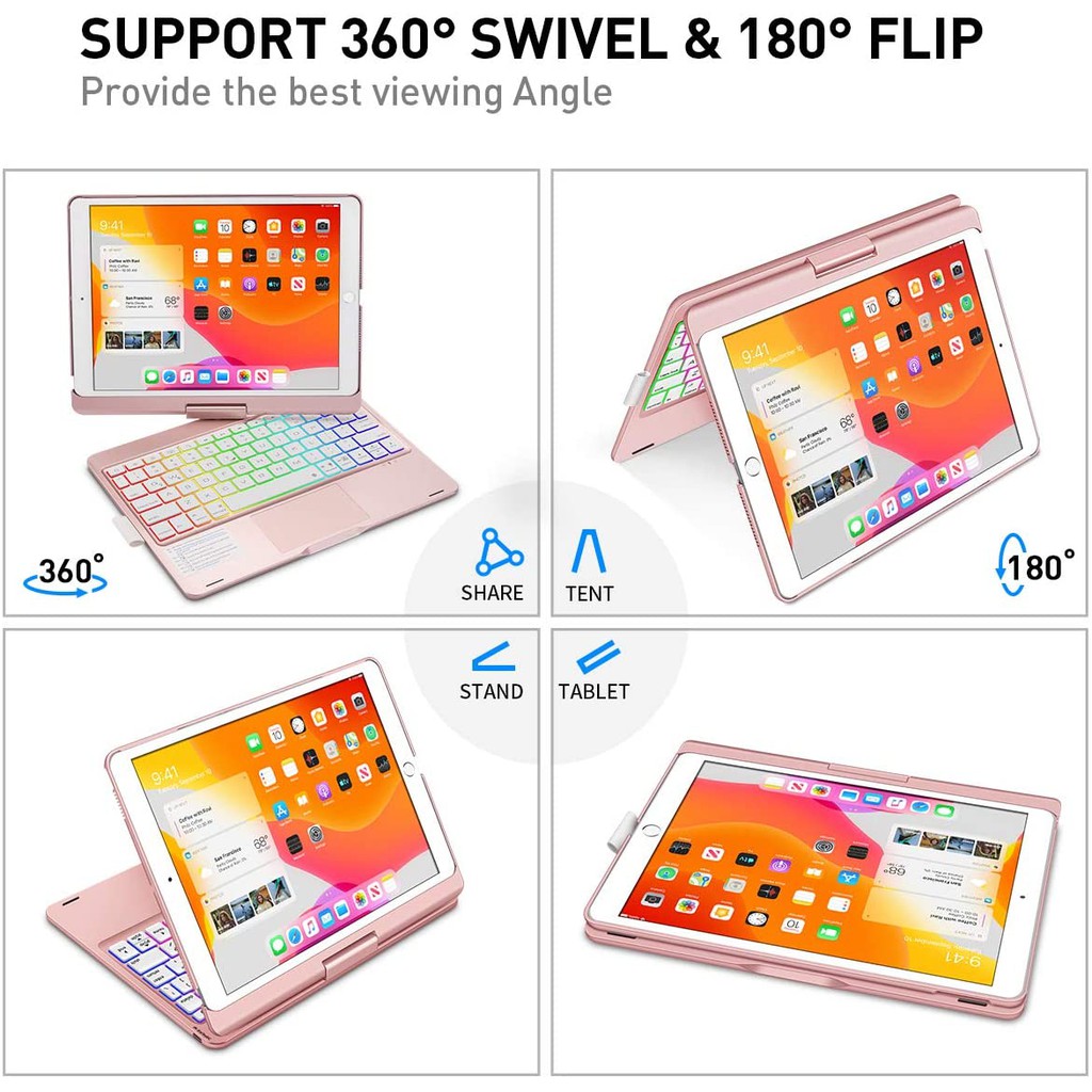 Bàn phím xoay 360 Bluetooth cho ipad 10.2 và ipad 10.5 dùng chung, có khe để bút tiện lợi