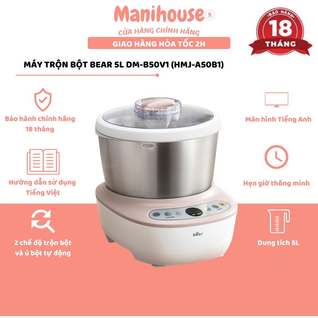 (BẢN TIẾNG ANH) Máy Trộn Bột, Máy Nhồi Bột ,Nhào Bột Bear Tự Động 5L DM-B50V1 (HMJ-A50B1) Cho Người Yêu Làm BánhBẢO HÀNH CHÍNH HÃNG 18 THÁNG Ở VIỆT NAM