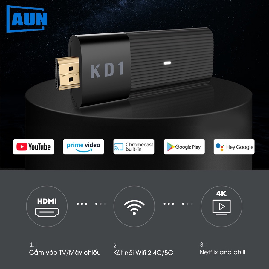 🔥 Những thiết bị Androi box lâu nay khá to, cồng kềnh và cắm dây khá vướng víu khiến cho việc bạn sử dụng gây nhiều khó khăn, trở ngại, vì vậy mẫu Androi Box mini Stick ra đời để giải quyết vấn đề này với thiết kế nhỏ gọn như 1 chiếc Usb có đầu cắm là cổng HDMI trực tiếp vào thiết bị rất nhanh và tiện lợi đi kèm với đầy đủ các phụ kiện, cổng kết nối tích hợp đầy đủ khiến chiếc mini androi box này không hề kém cạnh các mẫu Androi box loại to hiện nay trên thị trường🔥 Androi tivi box mini stick là mẫu androi box mini nhỏ gọn nhất hiện nay với cấu hình cực mạnh mẽ, hoạt động nhanh, mượt, tương thích với tất cả các thiết bị như máy chiếu, tivi qua cổng cắm tiêu chuẩn HDMI