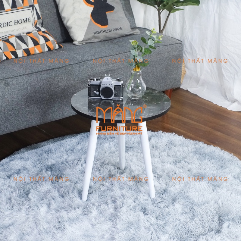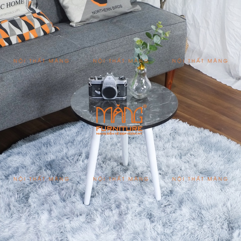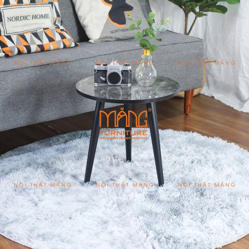 Bàn trà tròn mặt gỗ vân đá chân sắt siêu bền cỡ nhỏ bt03 – phong cách scandinavian🔰 THÔNG TIN SẢN PHẨM