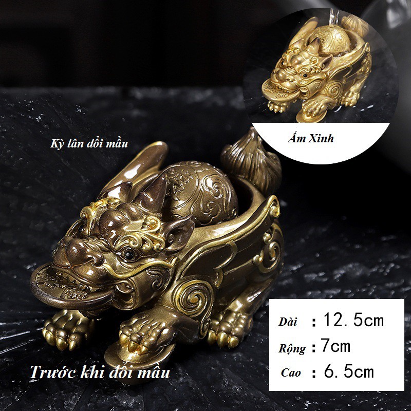 Cóc ba chân đổi mầu - Thiềm thừ đổi mầu - Cóc vàng ngậm tiền tài lộc.Chất liệu: Đá biến nhiệt