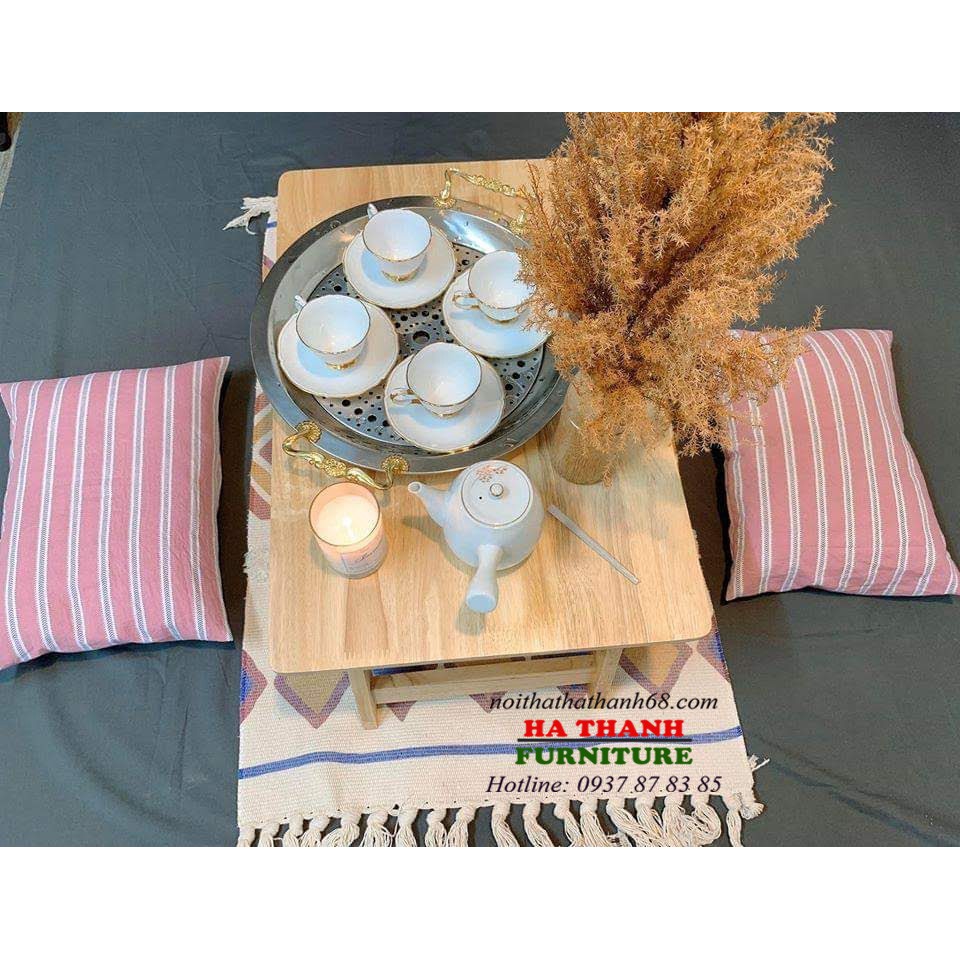 - Bàn trà gỗ cao su của Chúng tôi thiết kế gấp gọn tiện lợi giúp tiết kiệm diện tích tối đa