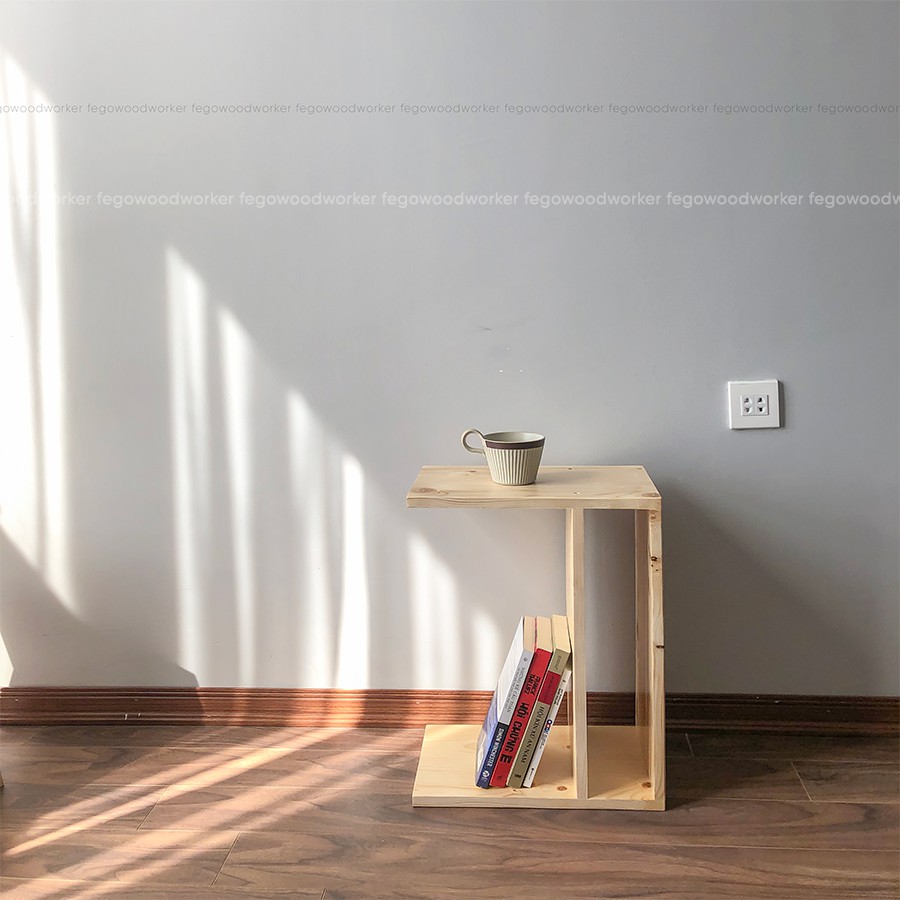 Nhà cửa & Đời sống > Nội thất > Bàn || [Mã LIFEMALL253 giảm 100K đơn 250K] Bàn trà gỗ thông FEGO ngồi sofa, Kệ decor tối giản chữ C 36x44x25cmCòn hàng