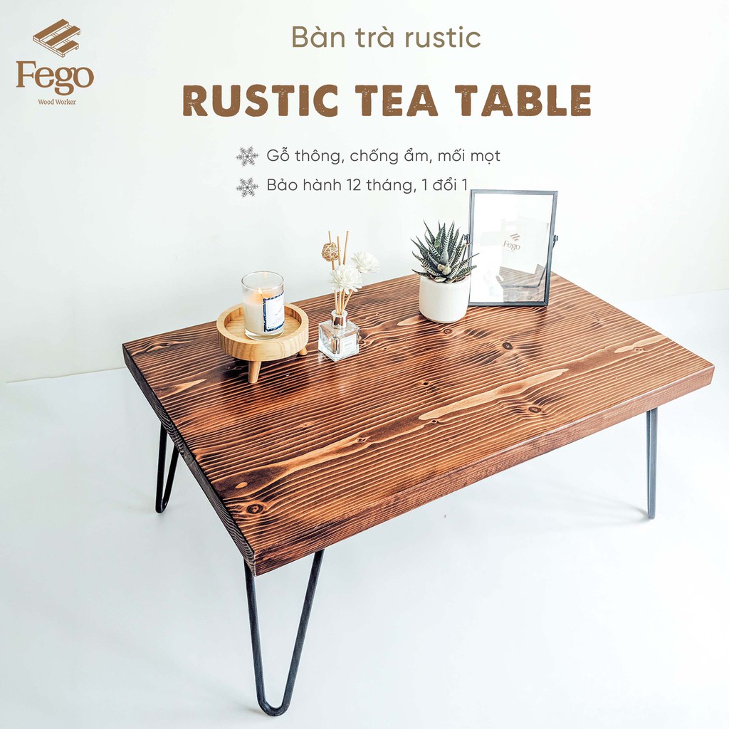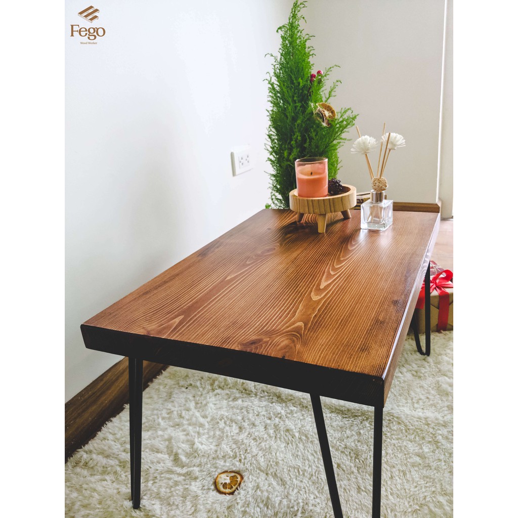 Nhà cửa & Đời sống > Nội thất > Bàn || [Mã LIFEMALL253 giảm 100K đơn 250K] Bàn trà gỗ thông FEGO0028 chân sắt hairpinCòn hàng