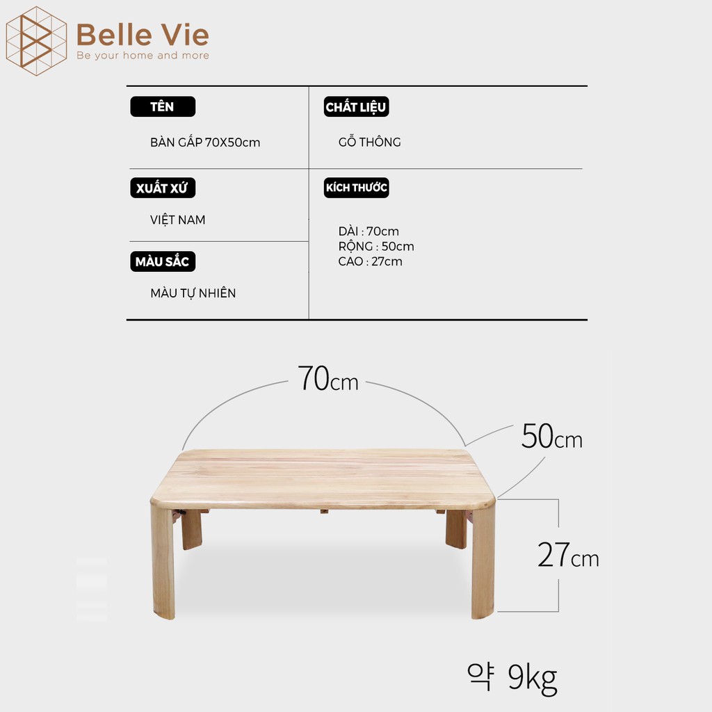 Bàn Trà Chân Gấp BELLEVIE Bàn Làm Việc Gỗ Tự Nhiên Gấp GọnTHÔNG SỐ: