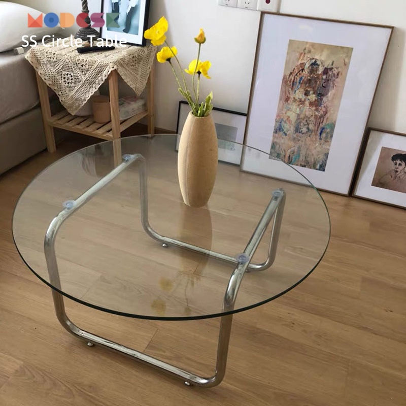 Bàn trà, sofa Modesk SS Circle Table inox 304 – Kính cường lực tối giản