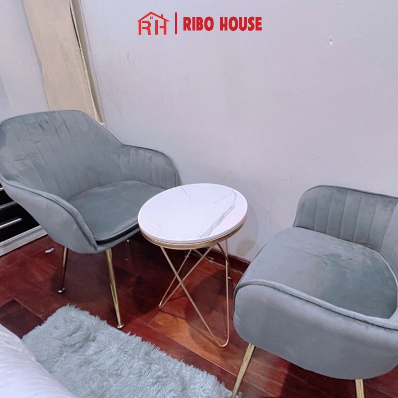 Bàn trà sofa RIBO HOUSE mặt đá tròn vân mây khung hình sao, bàn trang trí phòng khách tiệm nails spa homestay RIBO82