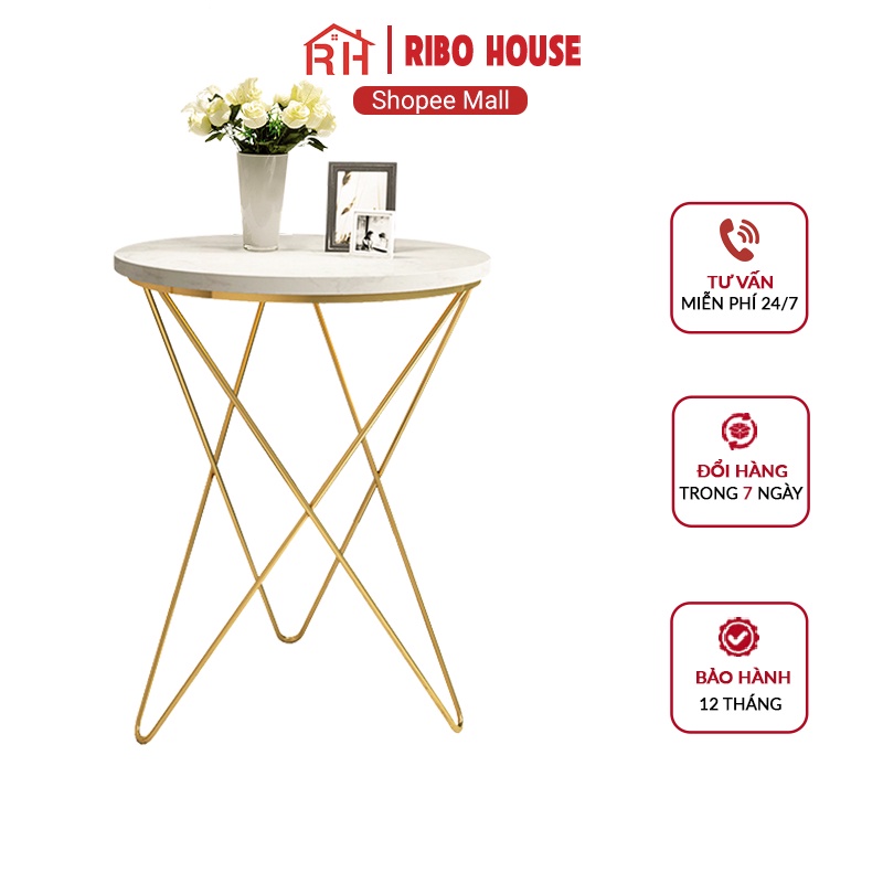 Nhà cửa & Đời sống > Nội thất > Bàn || Bàn trà sofa RIBO HOUSE mặt đá tròn vân mây khung hình sao, bàn trang trí phòng khách tiệm nails spa homestay RIBO82Còn hàng