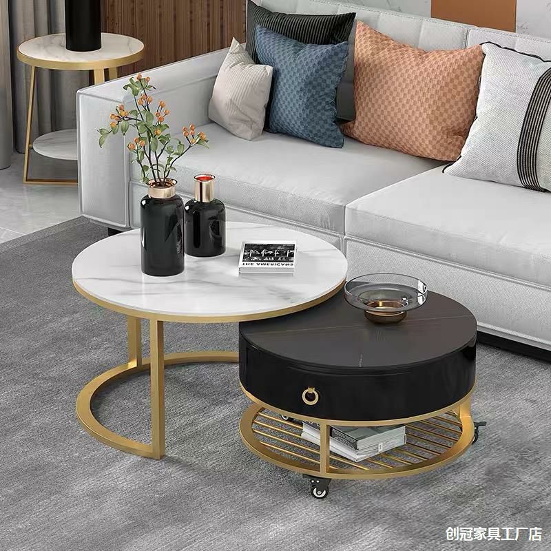 Giới thiệu Bàn Trà Tròn Đôi có bánh xe , Bàn Sofa Phòng Khách Mặt Đá Cao Cấp Decor Nhà Đẹp