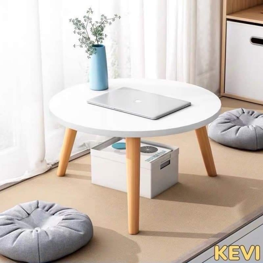 Bàn trà tròn sofa, cafe ngồi bệt chân gỗ sồi tự nhiên tiện ích đường kinh 60