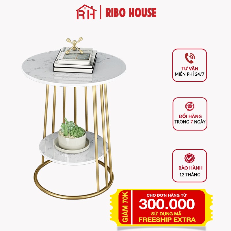 Nhà cửa & Đời sống > Nội thất > Bàn || Bàn trà tròn sofa RIBO HOUSE mặt đá vân mây, bàn 2 tầng khung kim loại sơn tĩnh điện ngồi uống trà cafe ban công RIBO93Còn hàng