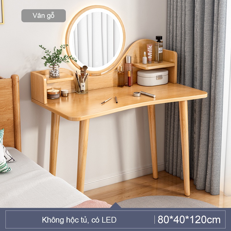 Nhà cửa & Đời sống > Nội thất > Bàn || Bàn trang điểm chân gỗ tự nhiên tích hợp đèn LED thông minh có nút cảm ứng bật tắt điều chỉnh độ sáng phong cách Bắc AuCòn hàng