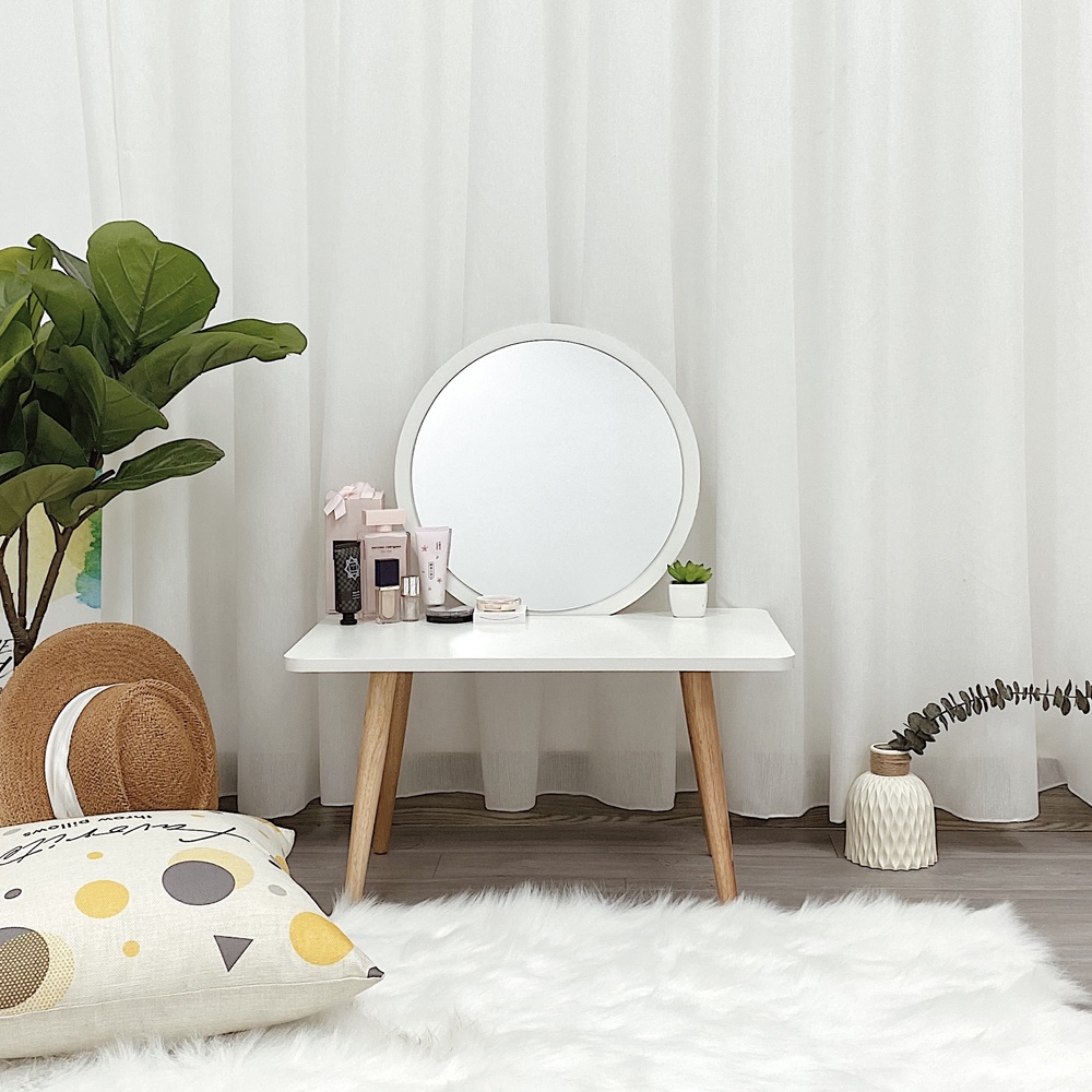 - Công năng: Là chiếc bàn trang điểm cực chill cho các quý cô thường xuyên trang điểm. Đặc biệt phù hợp với phòng có diện tích khiêm tốn.