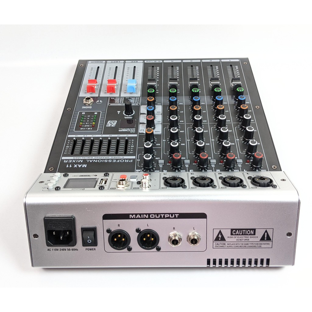 Bàn trộn âm thanh- Mixer Max 11 - 6 kênh (4 mono, 2stereo) kết nối Bluetooth,USB - 99 hiệu ứng vang - Tích hợp nguồn 48v