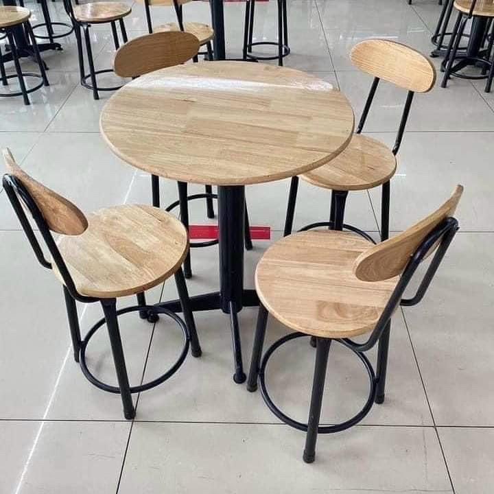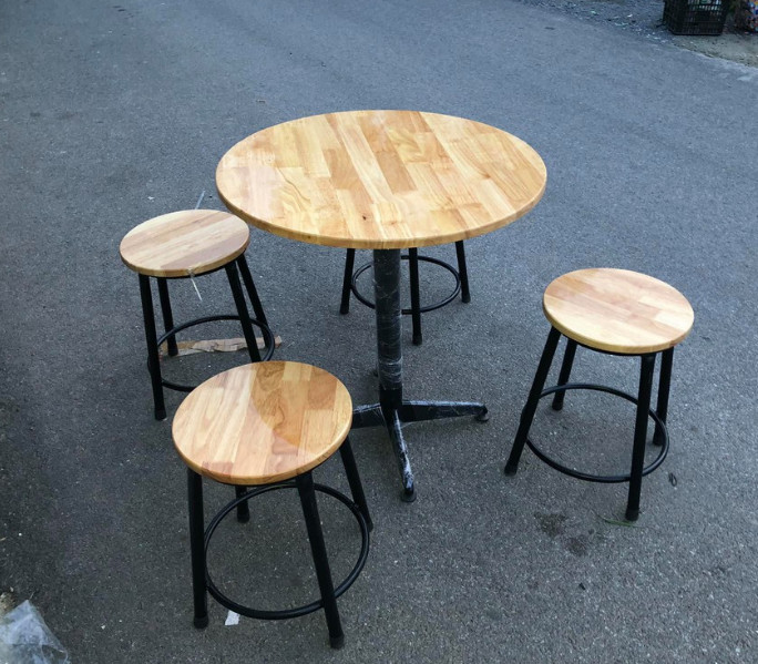 Bàn Tròn Cafe Eames Chân Trụ Sắt, Mặt Bàn Gỗ Cao Su