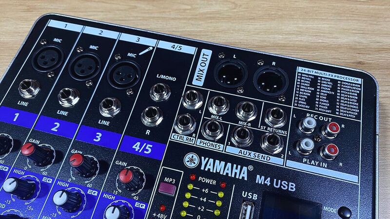 Mixer Yamaha M4 USB với thiết kế 4 kênh đầu vào gồm 3 cổng mono và 1 cổng stereo giúp bạn có thể kết nối được nhiều micro và nhạc cụ cùng lúc, bên cạnh đó mixer Yamaha M4 USB còn hỗ trợ thêm 3 đường cấp nhạc vào là cổng RCA, USB và Bluetooth cực kỳ tiện lợi