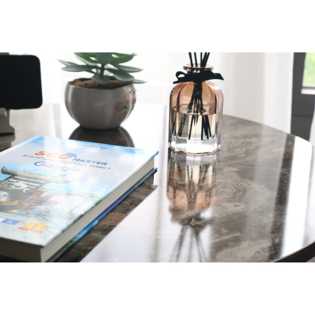 Bàn tròn sofa, cafe mặt vân đá hoa cương chân gỗ tự nhiên sang trọng thương hiệu TADA.