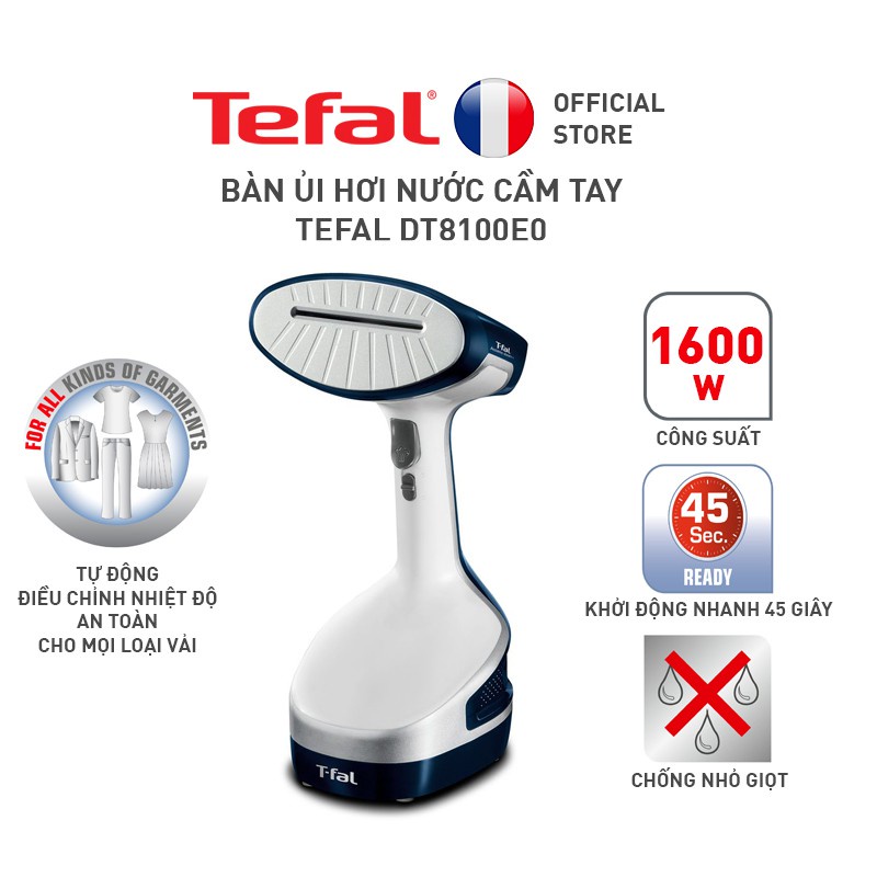 Thiết Bị Điện Gia Dụng > Thiết bị điện gia dụng nhỏ > Bàn là khô & Hơi nước || Bàn ủi hơi cầm tay Tefal DT8100E0Còn hàng