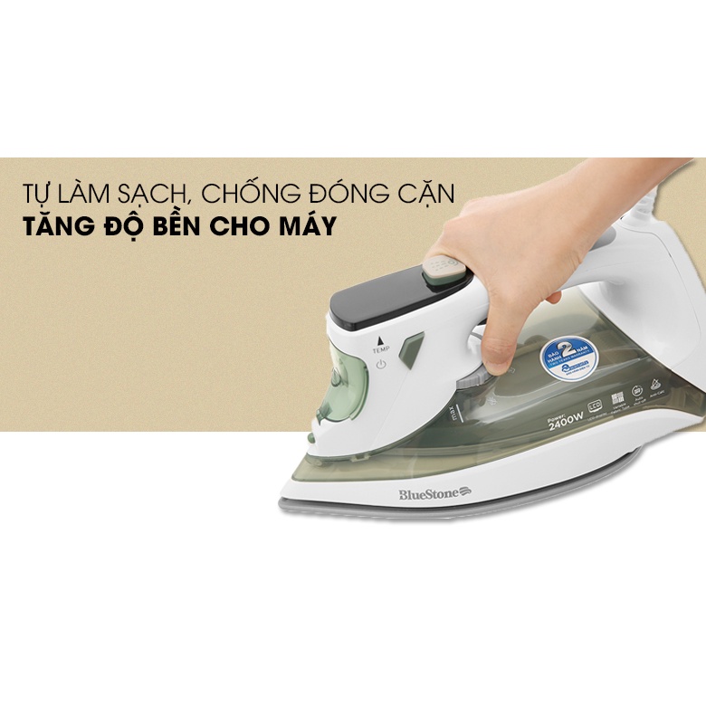 Bàn ủi hơi nước Bluestone SIB-3879 kiểu dáng nhỏ gọn, màu sắc trang nhã, công suất lớn 2020W - 2400WỦi quần áo thẳng nhanh chóng, hiệu quả, tiết kiệm thời gian, công sức.