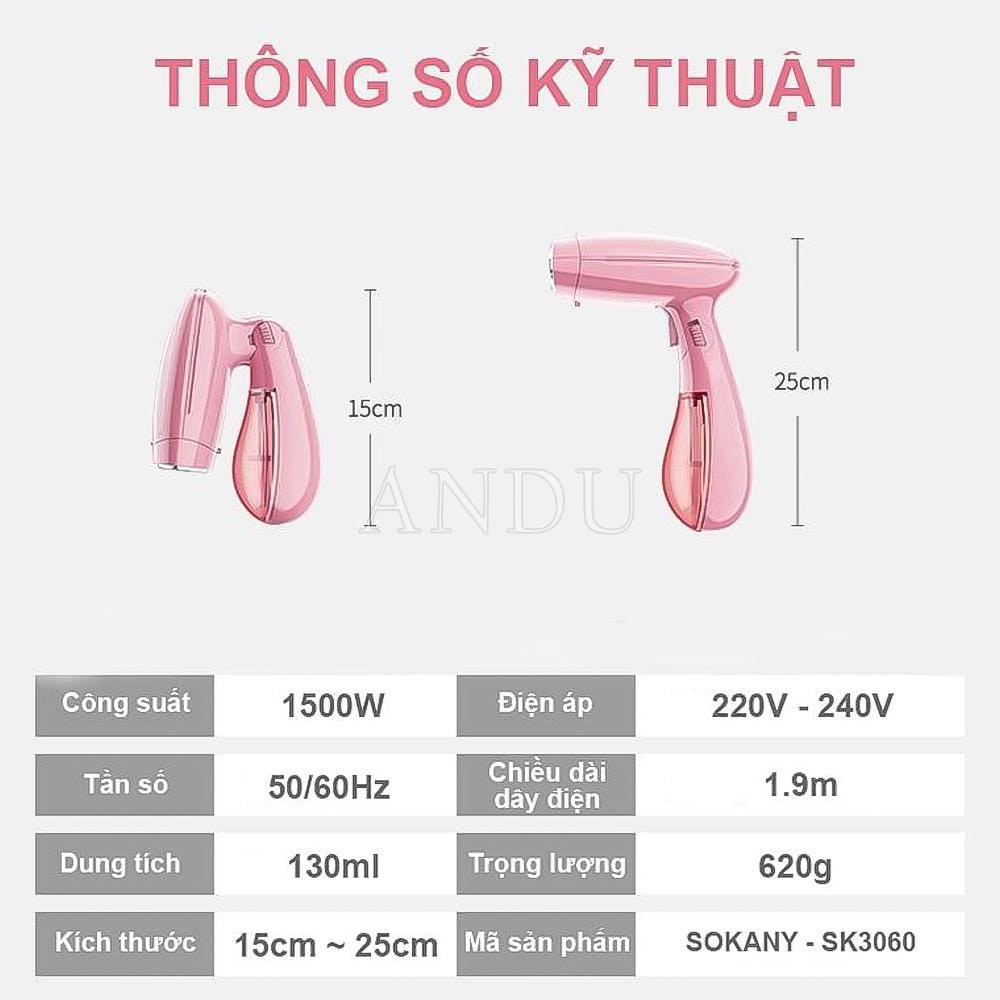 Bàn Là Hơi Nước Cầm Tay Gấp Gọn Sokany SK-3060 Tiện Dụng* THÔNG SỐ KỸ THUẬT: