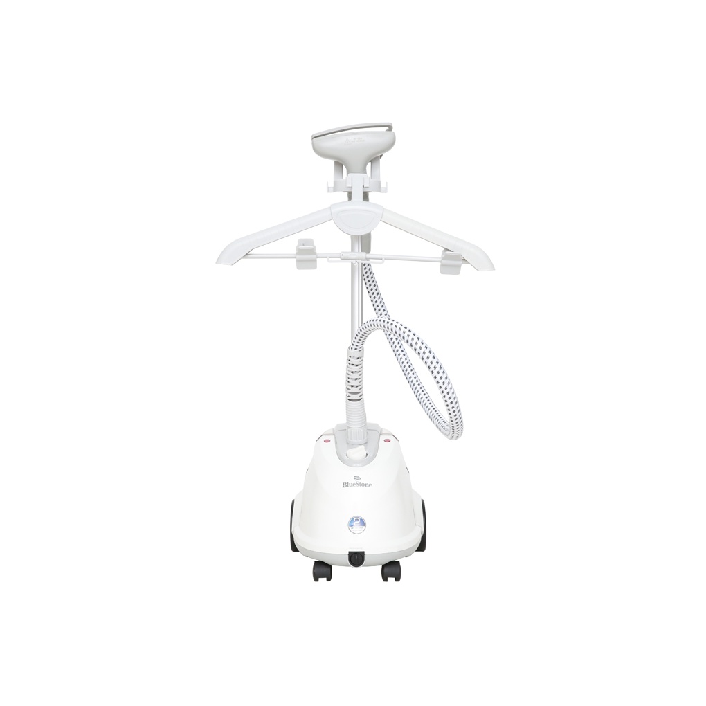 Bàn ủi hơi nước đứng Bluestone thiết kế hiện đại, màu trắng xám trang nhã, có bánh xe di chuyển linh hoạt, thuận tiện đến mọi địa điểm trong nhàTrang bị bảng điều khiển núm vặn tương ứng cho phép người dùng tùy chỉnh 6 chế độ phun hơi nước dễ dàng