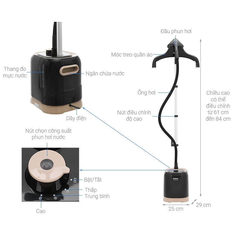 Tính năng: Phun hơi tăng cường, Có móc treo quần áo, 3 mức nhiệt độ