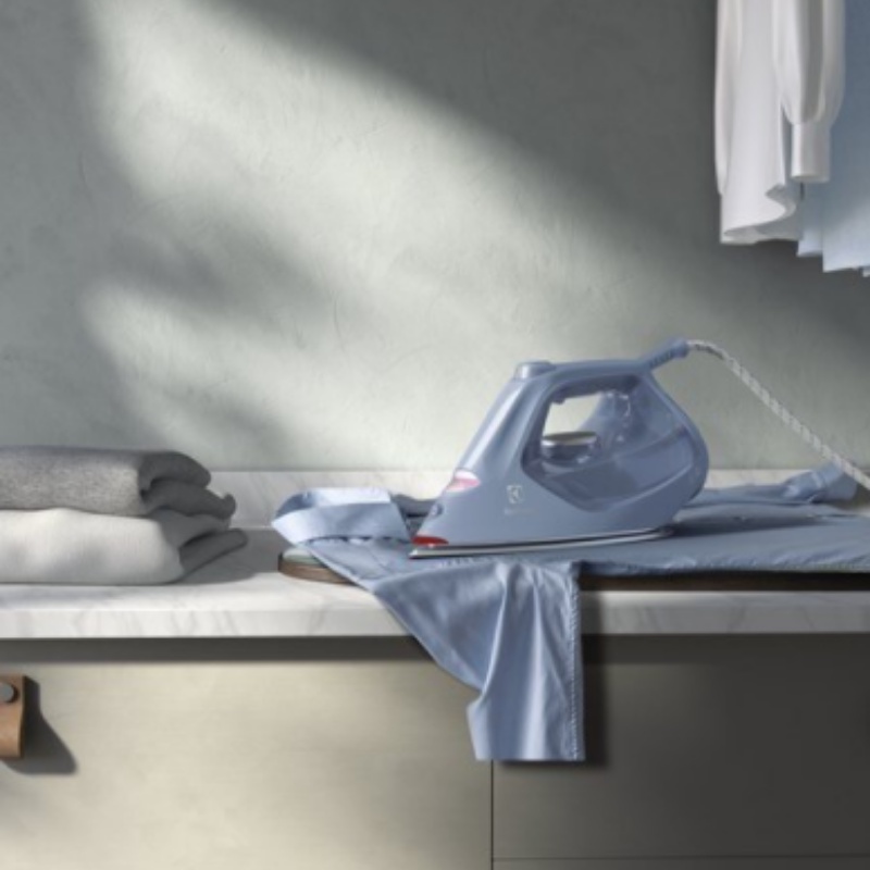 Bàn ủi hơi nước Electrolux trẻ trung, sang trọng với tông màu xanh nhẹ dịu, tạo điểm nhấn đẹp mắt cho không gian sử dụng.
