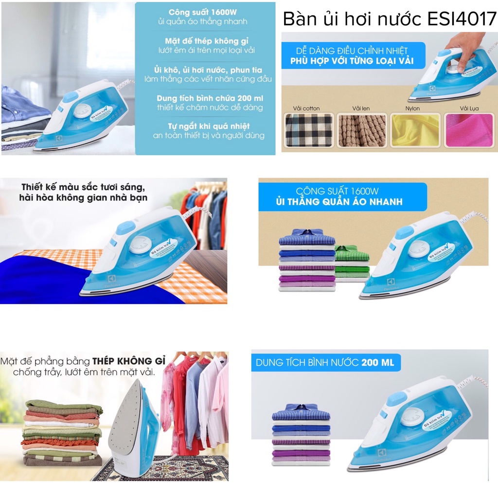 Thiết Bị Điện Gia Dụng > Thiết bị điện gia dụng nhỏ > Bàn là khô & Hơi nước || Bàn ủi hơi nước Electrolux ESI4017, ESI5126 hàng chính hãng (BH 12 Tháng)Còn hàng