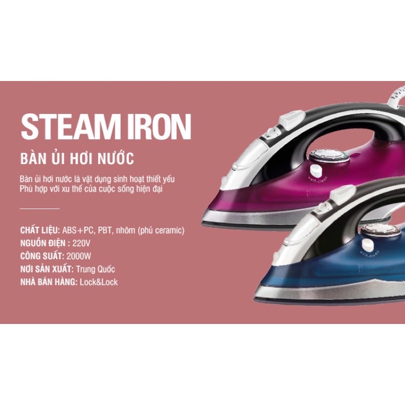 Giới thiệu Bàn ủi hơi nước Lock&Lock ENI147 pink(2200w) hàng chính hãng