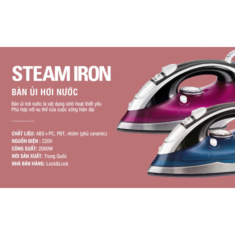 Thiết Bị Điện Gia Dụng > Thiết bị điện gia dụng nhỏ > Bàn là khô & Hơi nước || BÀN ỦI HƠI NƯỚC LOCK&LOCK ENI331- 2200WCòn hàng