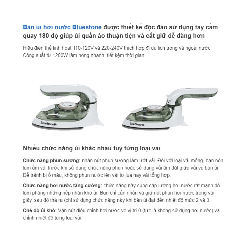 Thương hiệu: Bluestone | Xem thêm các sản phẩm Bàn ủi, bàn là của BluestoneMô tả ngắn