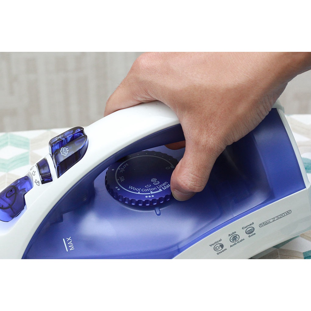 ● Thiết kế núm vặn giúp bạn tùy chỉnh nhiệt độ ủi thích hợp cho từng loại vải chính xác, tiện lợi
