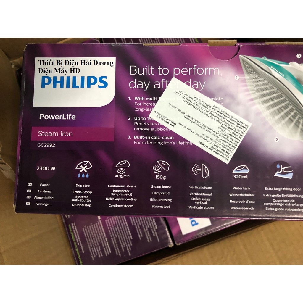 Bàn ủi hơi nước Philips GC2992 thiết kế sang trọng, của thương hiệu nổi tiếng Hà Lan – Philips, công suất 2400 W