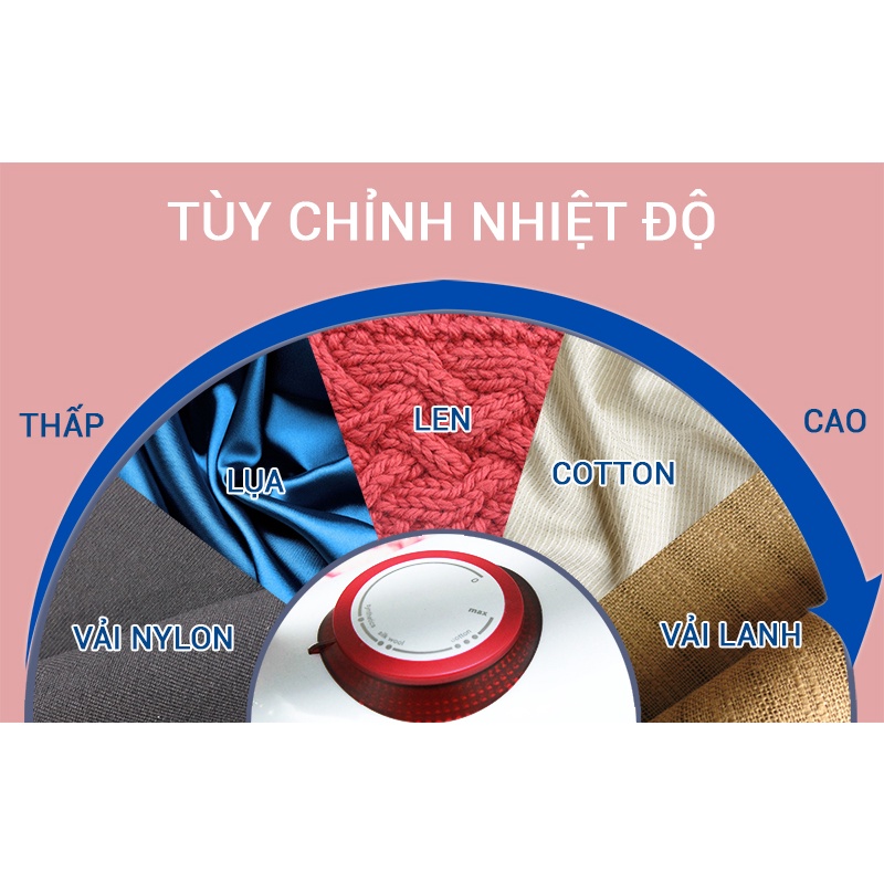 Núm xoay điều chỉnh nhiệt giúp bạn nhanh chóng chỉnh nhiệt độ ủi thích hợp cho từng loại vải