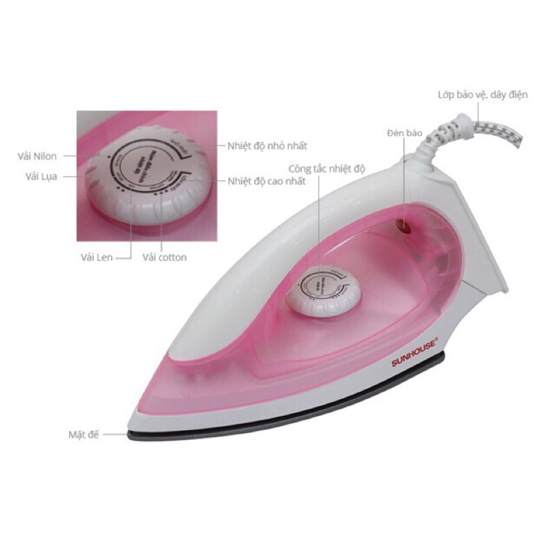 Bàn ủi khô Sunhouse SH-1072Thiết kế đẹp, tiện dụng, hoạt động với công suất 1000 W