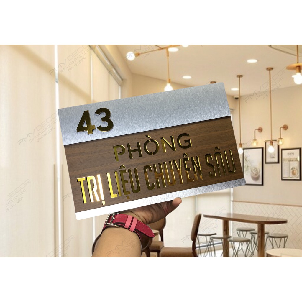 * Màu sắc: Nền màu vân gỗ, chữ màu vàng gương, có thể thay nội dung dễ dàng