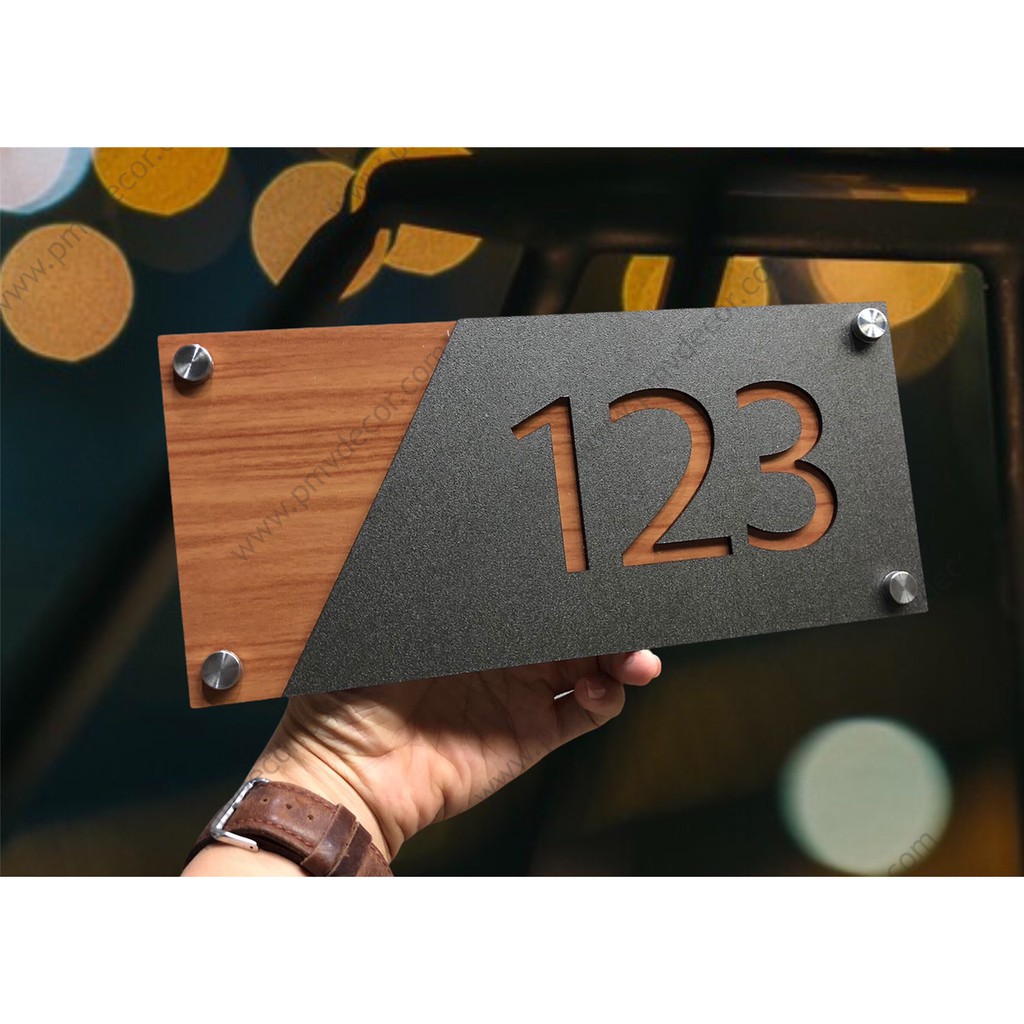 Nhà cửa & Đời sống > Nội thất > Khác || BẢNG, BIỂN SỐ NHÀ. Alcorest vân gỗ + mica cán ghi sần, số chìm,ngoài trời, BSN-PMV166Còn hàng