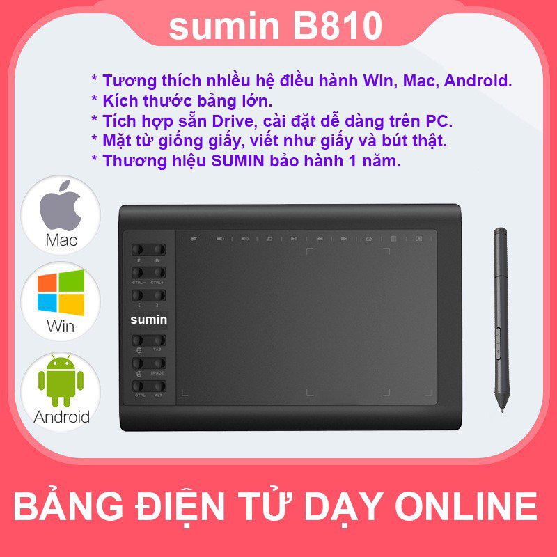 Máy tính & Laptop > Chuột & Bàn Phím > Bảng Vẽ Điện Tử || Bảng điện tử Sumin B810 viết vẽ học online, dạy trực tuyến cho giáo viênCòn hàng
