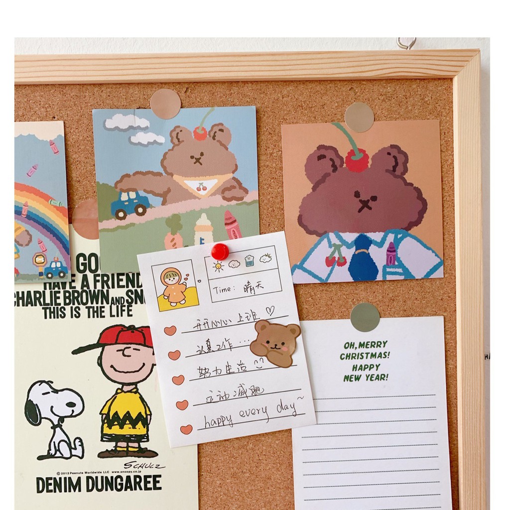 - Kích thước: Xem hình. 1 set gồm 1 bảng, 1 dây treo, 2 ốc treo, 1 đồ đính tường, 8 cái ghim, 1 set postcard, 1 tấm sticker tròn (random mẫu)