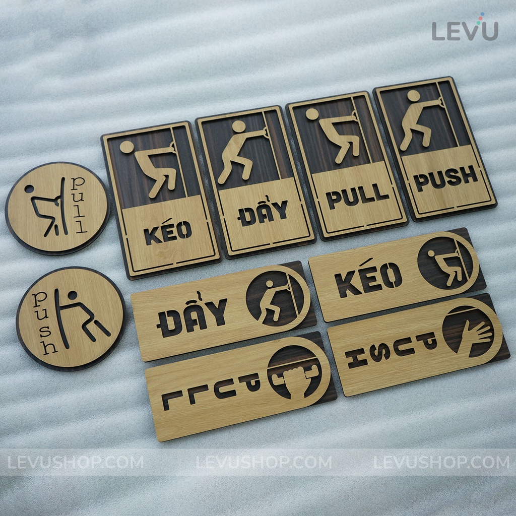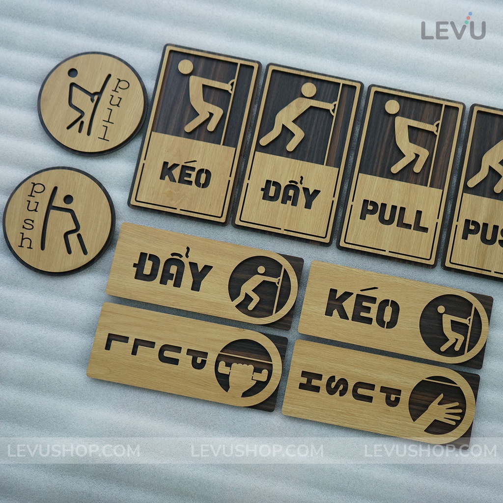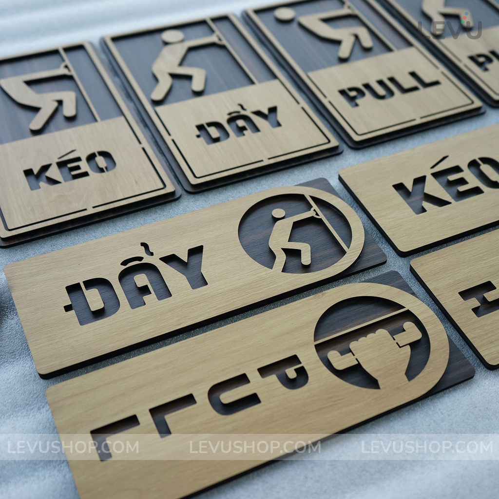 Bảng gỗ Pull Push, Kéo Đẩy hướng dẫn mở cửa ra vào decor độc đáo mẫu mới toanh được thiết kế độc quyền bởi Sbtech và Levushop từ chất liệu vân gỗ cổ điển đến sự hoàn thiện từng chi tiết sản phẩm ở chất lượng tuyệt vời. Giá trên với 5 tùy chọn gồm tiếng việt kéo đẩy, tiếng anh pull push và các lựa chọn về mẫu mã tính theo bộ hoặc theo cặp 2 tấm đi cùng nhau.
