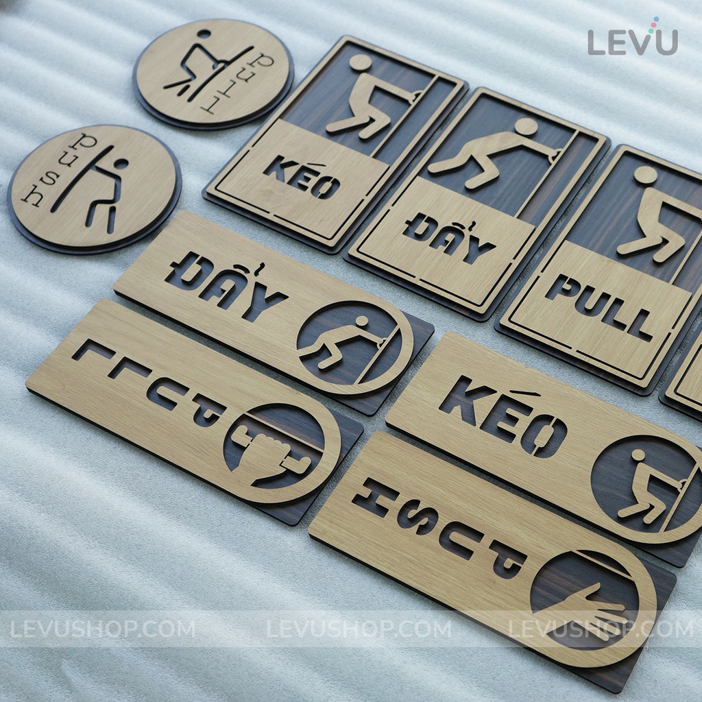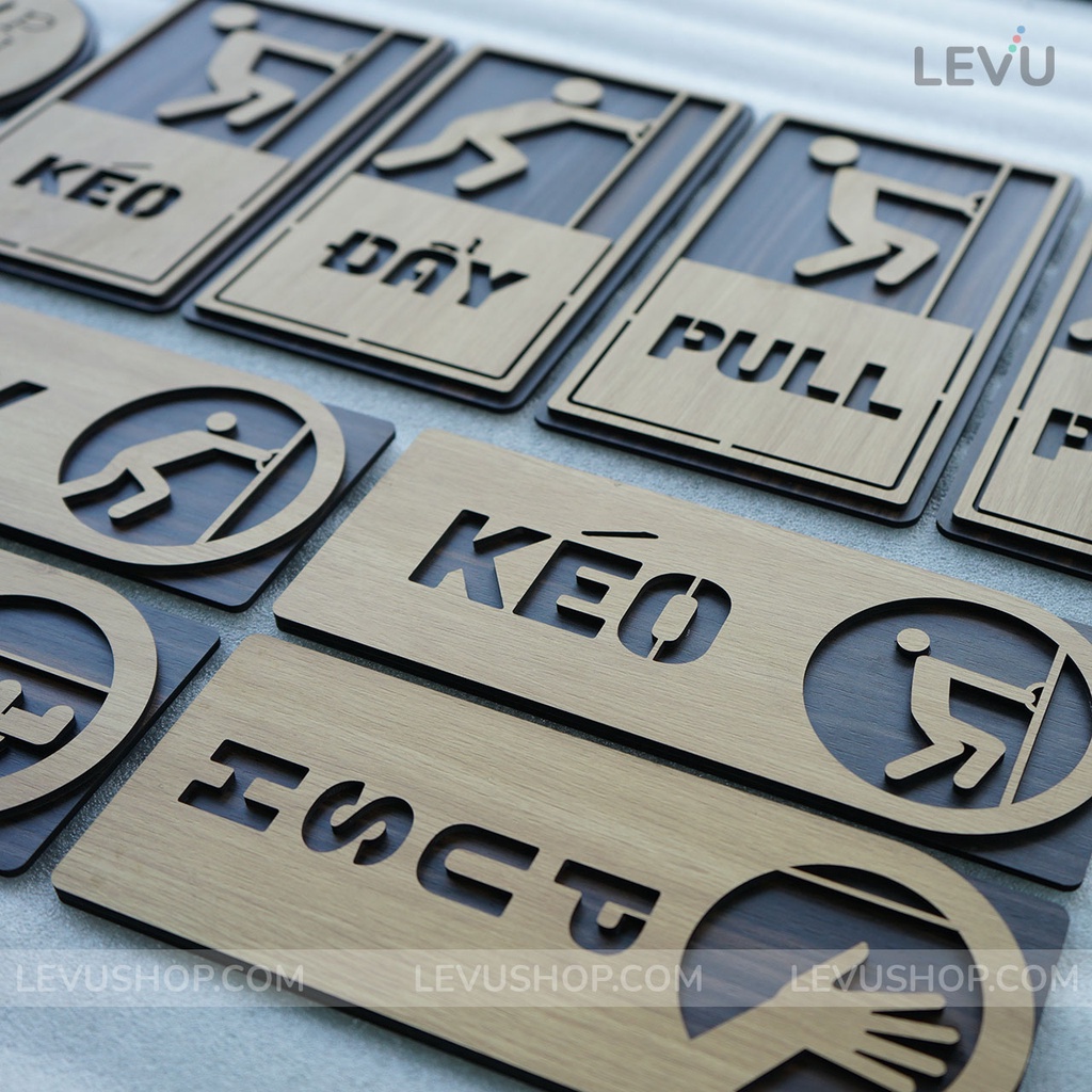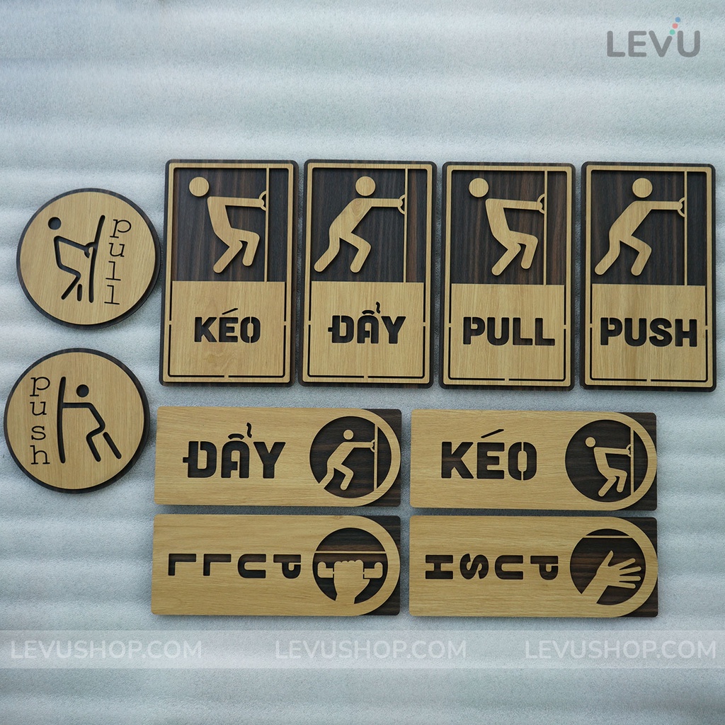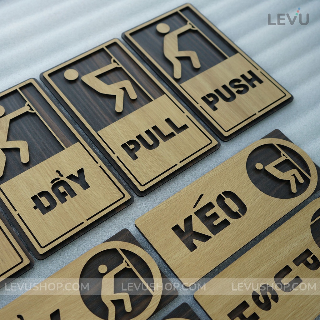 Bảng gỗ Pull Push, Kéo Đẩy hướng dẫn mở cửa ra vào decor độc đáo mẫu mới toanh được thiết kế độc quyền bởi Sbtech và Levushop từ chất liệu vân gỗ cổ điển đến sự hoàn thiện từng chi tiết sản phẩm ở chất lượng tuyệt vời. Giá trên với 5 tùy chọn gồm tiếng việt kéo đẩy, tiếng anh pull push và các lựa chọn về mẫu mã tính theo bộ hoặc theo cặp 2 tấm đi cùng nhau.