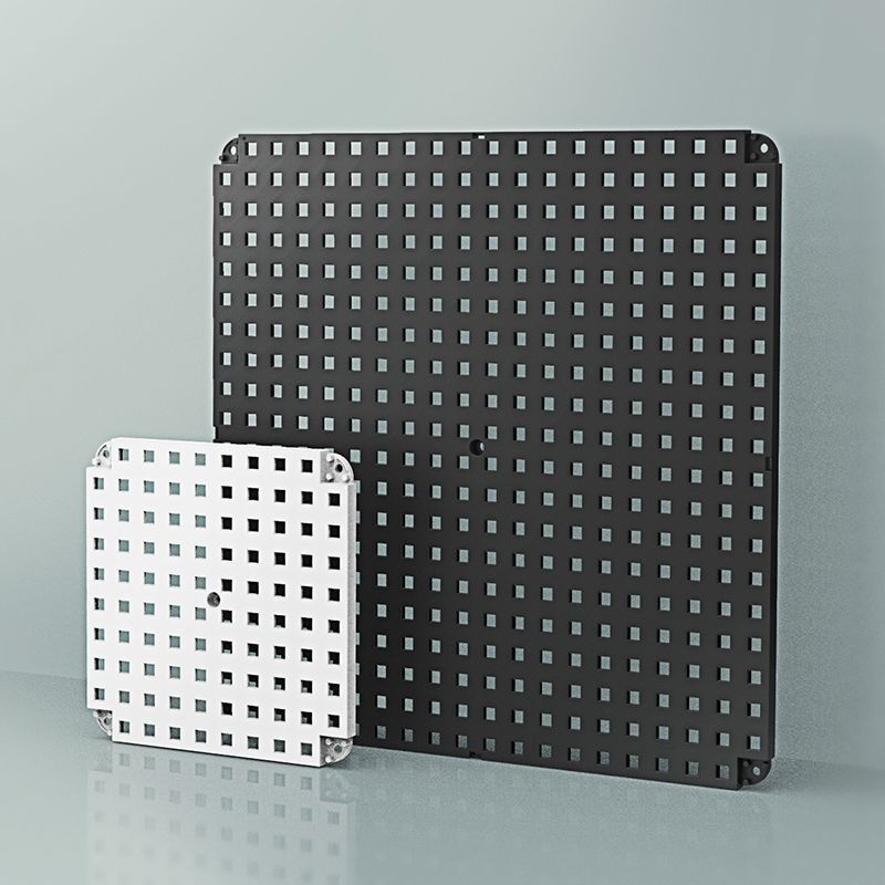 - Tấm bảng Pegboard là bộ phận cơ bản để tạo nên một hệ bảng pegboard treo tường hoàn chỉnh. Nhờ vào thiết kế đặc biệt mà các chi tiết giá, kệ, khay có thể kết nối chắc chắn trên đó.