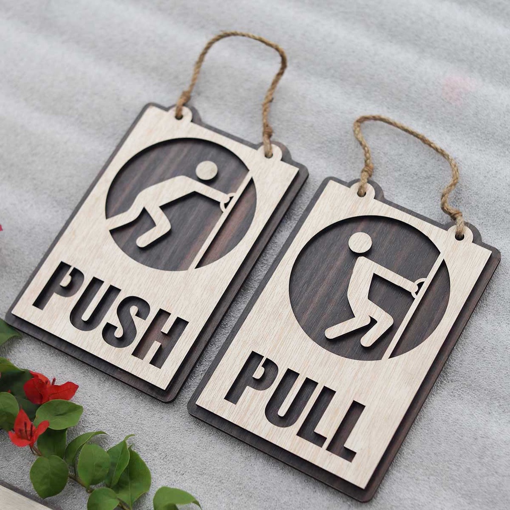 Bảng pull push, bảng kéo đẩy bằng gỗ treo cửa kính decor trang trí cửa ra vào