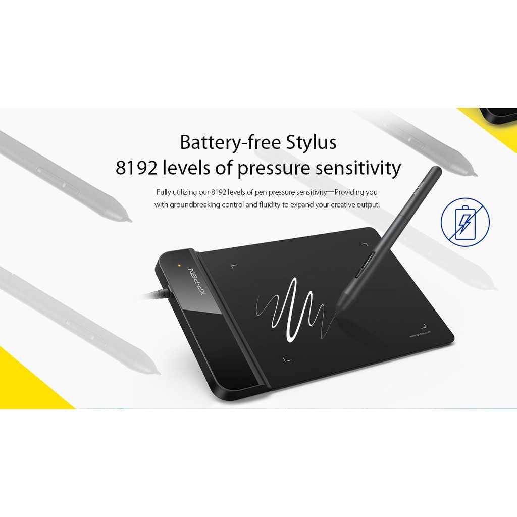 Không thể hào phóng hơn khi XP-Pen đẩy mức lực nhấn cảm ứng của Star G430S lên đến 8192 mức, cho phép bạn chỉnh sửa, điều hướng và sáng tạo với nguyên bộ cọ và bút, cảm giác như dùng một cây bút thực vậy.