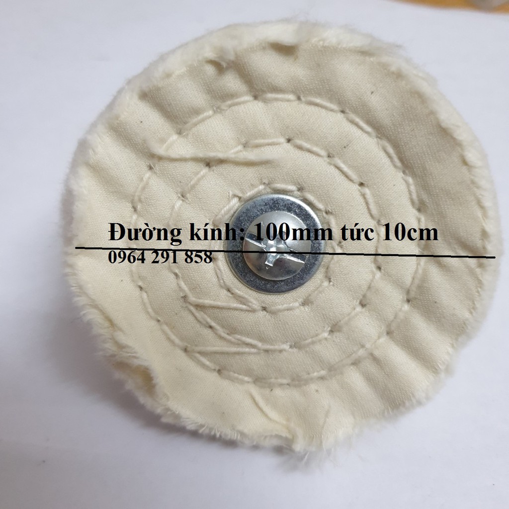 Đường kính :10cm chân cán 6mmBánh vải đánh bóng inox và kim loại