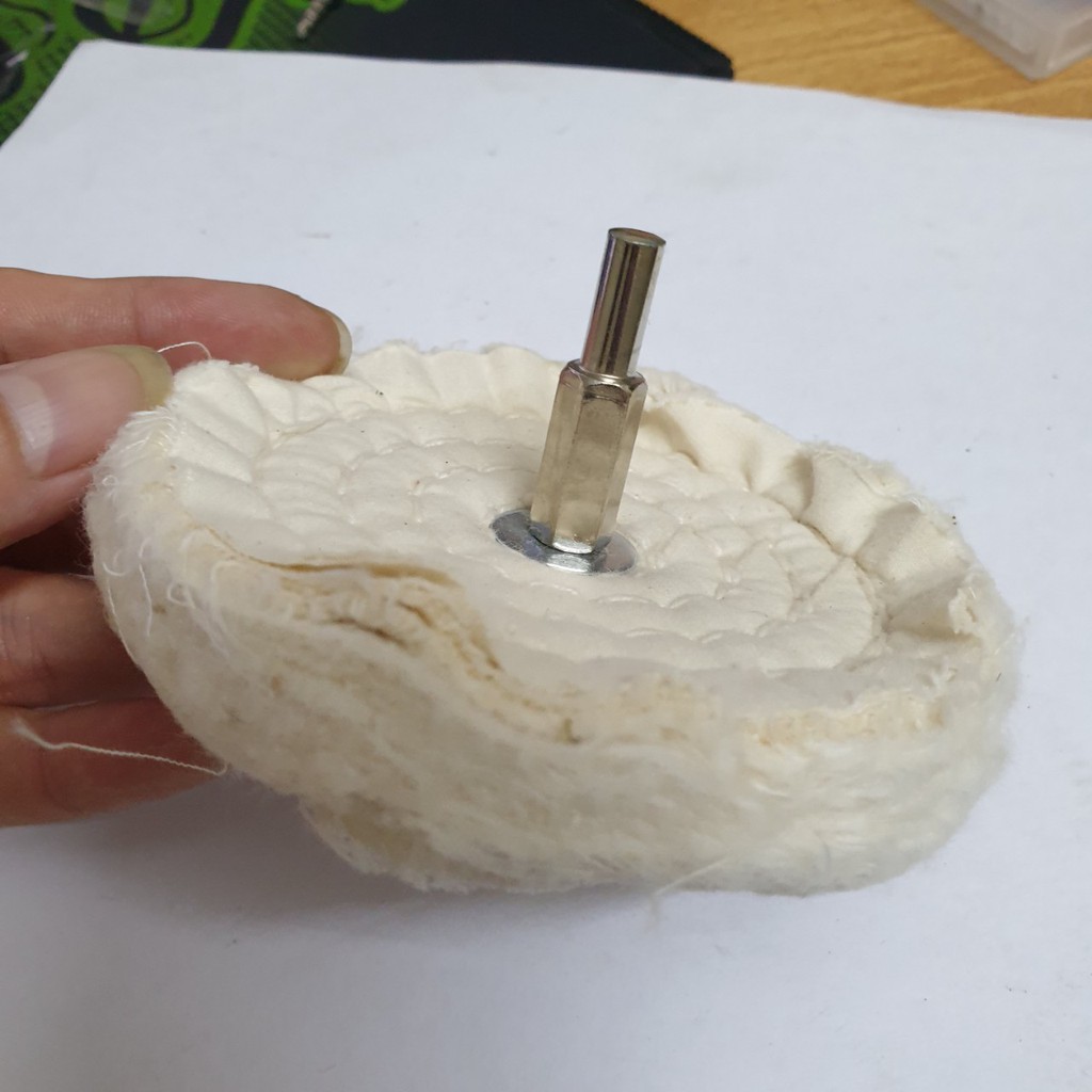 Nhà cửa & Đời sống > Dụng cụ & Thiết bị tiện ích > Dụng cụ > Giấy nhám, máy chà nhám và phụ kiện || BÁNH VẢI ĐÁNH BÓNG INOX cán 6mm đầu đánh bóng 10cmCòn hàng