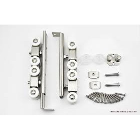 - Bộ sản phẩm bao gồm 2 bánh xe, một số phụ kiện đi kèm cố định cánh cửa.